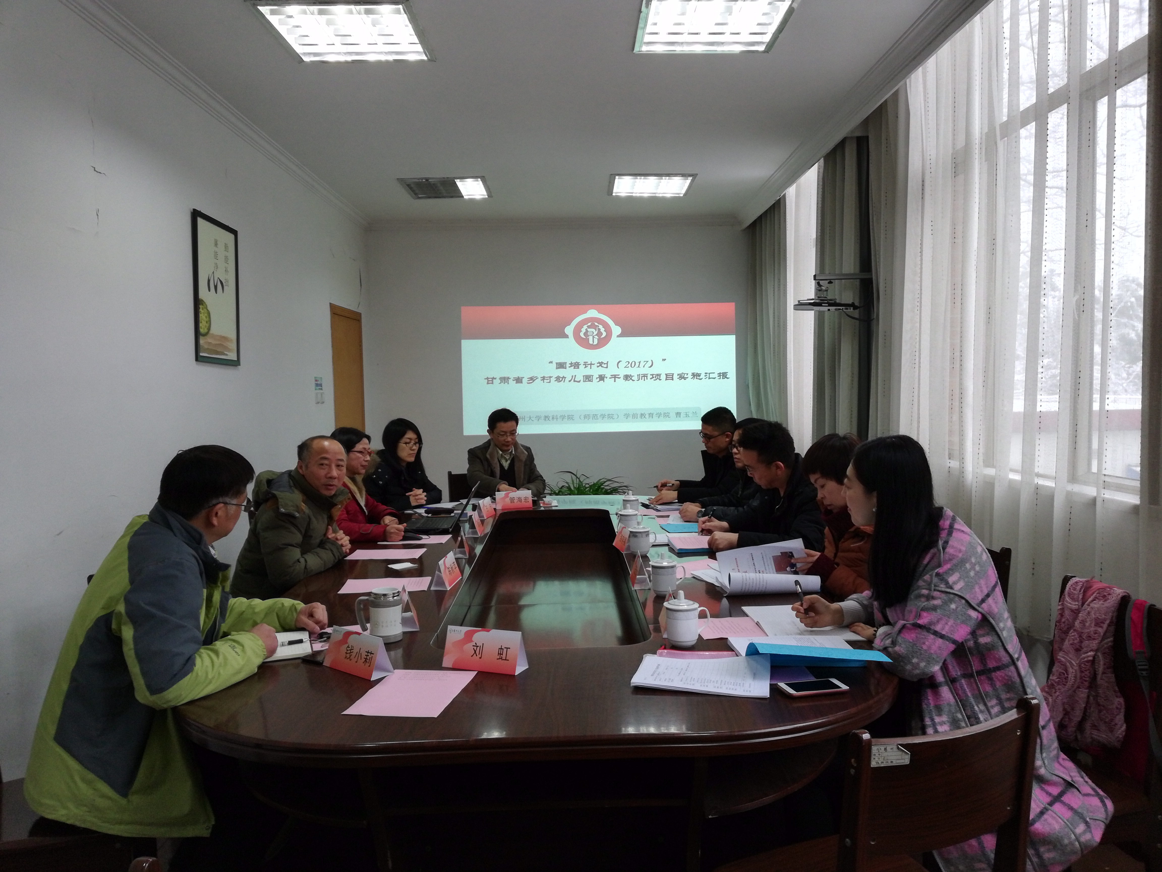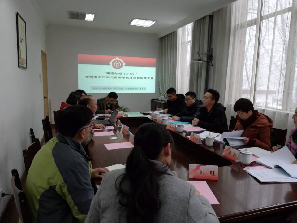 元月4日上午,按照甘肃省国培项目办的招标结果与要求,由兰州城市学院教育学院作为第三方对我院承担的2017甘肃省乡村幼儿骨干教师国培项目进行评估,我院有关领导及项目组工作人员分别就方案的实施、管理等做了汇报。第三方评估组听取汇报同时,查阅了培训实施过程的材料,如学员报到名册、简报、跟岗记录、项目评估总结、学员心得体会等。第三方评估对我院的项目实施过程及效果给予了充分肯定并提出了一些建议。