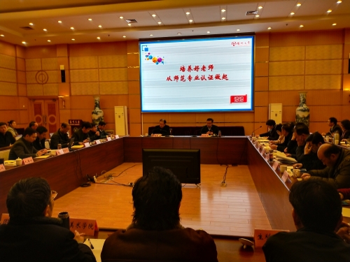 评估中心负责人解读了国家和江苏省师范类专业认证工作精神和要求,师范专业所在学院负责人通报了我校师范类专业申请认证的准备情况。